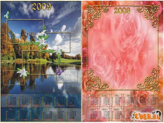 Календарь на 2009й год с возможностью вставить свои фотографии.