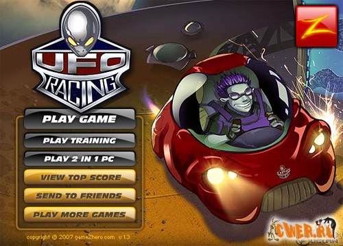 Весёлые флеш-гонки на летающих тарелках! В наличии различные трассы и пилоты.