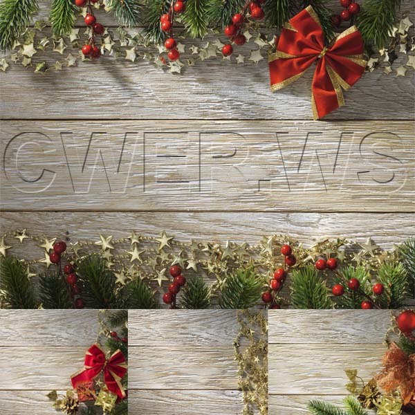 Высококачественный клипарт в растровом формате, который представляет собой профессиональные фотографии элементов дизайна новогодних композиций, изображенных на деревянных текстурах.