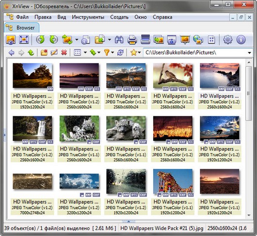 С помощью XnView можно быстро и легко просматривать, обрабатывать и переводить графические файлы из одного формата в другой. Программа знает более 500 различных графических форматов. Кроме файлов изображений, программа имеет поддержку отображения видео и аудио файлов, которая обеспечивается за счет кодеков, установленных в системе. Окно программы представляет собой дерево папок, совмещённое с областью предварительного просмотра. Если в директории, выбранной в дереве папок, находятся графические файлы, то они отображаются в виде небольших предварительных картинок-превьюшек. При наведении указателя мыши на такую картинку появляется детальная информация о файле. Отдельно стоит отметить возможность снимать скриншоты и создавать веб-страницы на основе директорий с графическими файлами.