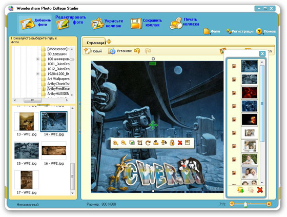 Wondershare Photo Collage Studio - набор инструментов для изготовления фотоколлажей профессионального качества. Кроме этого этот графический инструмент может создавать обложки для CD и DVD, обои для рабочего стола и web - графику. Обновленный пользовательский интерфейс предельно упростит работу с продуктом и позволит пользователям с минимальным уровнем подготовки реализовать свои самые смелые творческие замыслы. Продукт предлагает огромный выбор элементов Clip Arts, красочных спецэффектов и стилей шрифтов. Программа работает под управлением операционной системы Windows.