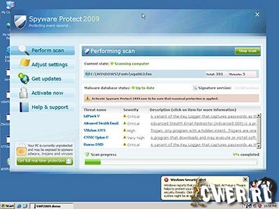 Эксперты "Лаборатории Касперского" сообщают о новых методах работы широко известного сетевого червя Conficker (в терминологии ЛК этот червь называется Kido). Согласно последним данным, червь загружает на зараженные ПК поддельный антивирус SpywareProtect2009. Его работа в системе видна пользователям, чьи компьютеры заражены.