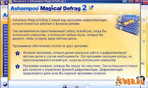 Построен по принципу "Установи и забудь". Работает в бэкграунде как сервис и по необходимости проводит дефрагментирование диска. Вы не почувствоваете её присутствия, т.к. она практически не грузит процессор. Пользователи с необходимыми правами также могут мониторить и контролировать работу программу по сети!