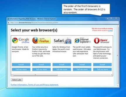 Компания Microsoft, выполняя решение европейской антимонопольной комиссии, предоставит пользователям Windows из Евросоюза возможность выбора веб-браузера по умолчанию. 1 марта разработчик выпустит обновление для Windows XP, Vista и Windows 7, которое будет представлять собой окно выбора браузера по умолчанию.