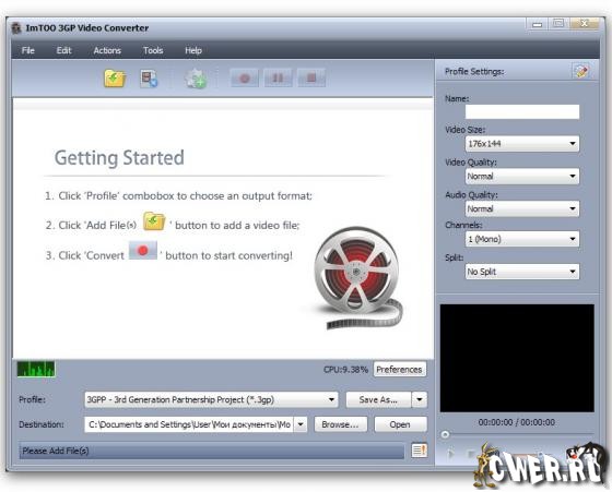 ImTOO 3GP Video Converter - новейшая версия популярнейшего конвертера, работающего с форматом 3 GP, применяемом в большинстве сотовых телефонов. Жмет полуторачасовой фильм до 50 МВ! Поддерживается конвертация следующих форматов: AVI, MPEG, 3GP, GIF, WMV, H.264, WMA, WAV, MP3, MP4, M4A, OGG, AAC.