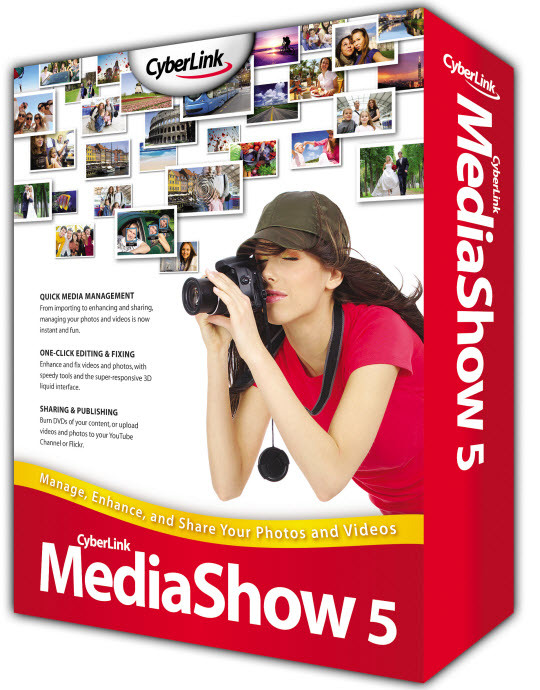 CyberLink MediaShow - мощное профессиональное решение для создания и записи на DVD фото слайд-шоу. Данное приложение позволяет работать с цифровыми изображениями, полученными практически из любых источников - фотокамер, видеокамер, мобильных телефонов и других источников, а привлекательный и удобный 3D-интерфейс облегчает работу с цифровыми ресурсами, поиск и навигацию по альбомам, сортировку архивов. Программа осуществляет автоматическую сортировку, поиск и просмотр детализированных превью. MediaShow позволяет быстро и профессионально отредактировать цифровые фотографии, исправляя такие недостатки, как недостаточная выдержка и неравномерное освещение, устранение эффекта красных глаз и настройку контрастности. В последней версии используется программа PhotoNow!, обеспечивающая передовые функции фоторедактирования, включая автоматическое исправление снимков и удаление эффекта.