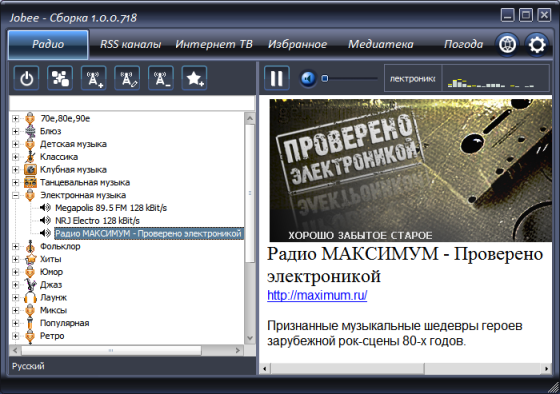 Jobee – это удобный плеер, предназначенный для комфортного прослушивания интернет радиостанций и аудио-подкастов, просмотра интернет-телевидения, чтения RSS-лент.