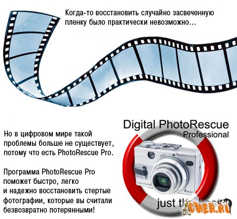 Digital PhotoRescue Professional - программа для восстановления удалённых фотографий с самых разнообразных носителей информации: цифровых фотоаппаратов, жестких дисков, CD/DVD дисков, мобильных телефонов, а также всех известных флэш-карт (таких как CompactFlash(type I/II), IBM Microdrives, SmartMedia, MultiMedia (MMCs), Secure Digital (SD), SONY Memory Stick и другие). Новые цифровые фотокамеры и флэш-карты позволяют многократно перезаписывать информацию на них. Порой, важная информация может быть случайно стерта. Казалось бы все пропало и время назад не отмотать. И в другом случае вы были бы правы, но... теперь вы знаете о PhotoRescue Pro и можете не волноваться о том, что удаленная по какой-либо причине информация будет навсегда потеряна. Программа PhotoRescue Pro легко и быстро восстановит ваши снимки и видеоролики!