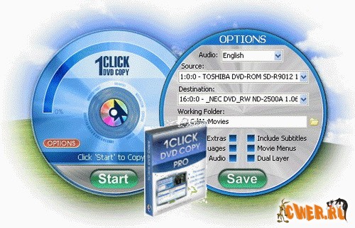 1Click DVD Copy - простой и быстрый инструмент для копирования видео DVD. Подойдёт как начинающим пользователям, (так как очень прост), так и продвинутым... Важно не то, что она обладает простым, но эргономичным интерфейсом и быстро работает, а то, что именно эта программа выдает наилучшее качество изображения при копировании среди себе подобных. Даже при 40% сжатии копия практически неотличима от оригинала.