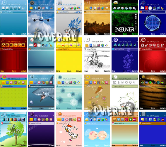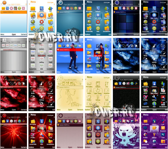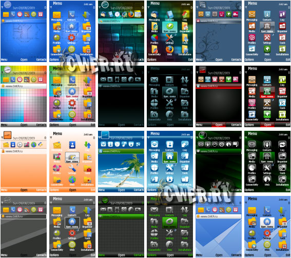 Темы для смартфонов Nokia под управлением Symbian OS 9.1, 9.2, 9.3: Nokia 3250, 5500 Sport, 5700, 6110 Navigator, 6120 c, 6121, 6220 classic, 6290, E50, E51, E60, E61, E61i, E62, E65, E70, E90, N71, N73, N75, N76, N77, N78, N79, N80, N81, N81 8GB, N82, N91, N92, N93, N93i, N95, N95 8GB и др. cwer.ws