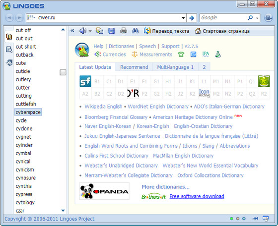 Lingoes Translator представляет собой простой и интуитивно понятный текстовый словарь и переводчик программного обеспечения. Программа может искать словари в интернете, переводить текст, производить захват слова на экране и произносить слова на более чем 80 языках.