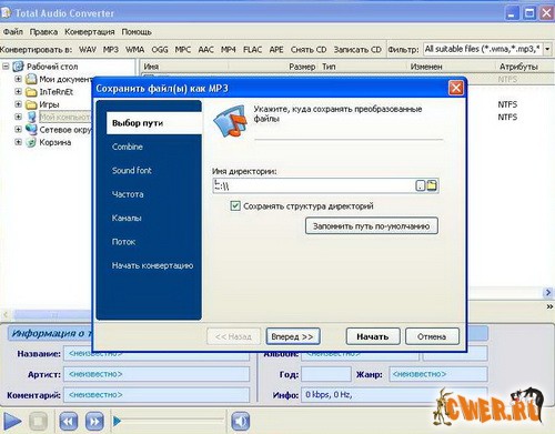 Total Audio Converter необходим для всех, кто хочет создавать собственные музыкальные коллекции. Теперь Вы сможете избавиться от лежащих повсюду аудио СD, конвертируя любой аудио файл в файл другого формата (WAV в MP3, или MP3 в OGG без создания промежуточного WAV файла), преобразовать канал (стерео в моно) или изменить поток и частоту. Даже если Вы просто хотите конвертировать MP3 в AAC, чтобы слушать музыку на мобильном телефоне, Total Audio Converter лучшее решение. Он уникален, так как поддерживает все популярные аудио форматы:
