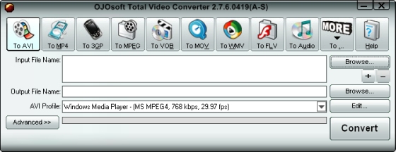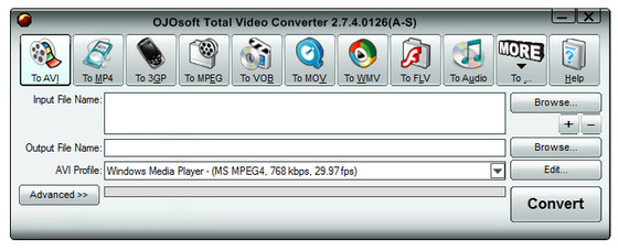 OJOsoft Total Video Converter - очень мощная программа, которая позволяет конвертировать любые видеофайлы в форматы 3gp (формат мобильных телефонов и наладонников), mp4, psp, iPod, swf, flv, DVD, VCD. Total Video Converter поддерживает чтение и проигрывание большого количества видео и аудио форматов (3gp, mp4, psp, iPod, swf, flv, DVD, VCD, mp3, ac3, ogg, wav, aac...), а также конвертирует их в популярные video/audio форматы и форматы мобильных телефонов и наладонников. Присутствует возможность извлечения аудио из видеотреков и сохранение в mp3, ac3, ogg, wav, aac. Поддерживаются видео стандарты DVD/SVCD/VCD, имеется встроенный плеер для просмотра и прослушивания. Total Video Converter имеем встроенный мощный алгоритм преобразования медиафайлов благодаря которому можно конвертировать их с очень высокой скоростью. Total Video Converter распознает свыше 40 видео и аудио форматов и поддерживает конвертирование между свыше 30 форматами.