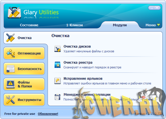 Glary Utilities – это бесплатный функциональный набор системных твикеров и утилит, для тонкой настройки, повышения общего уровня производительности и защиты ПК. Данное приложение позволяет пользователю избавиться от ненужных файлов, от устаревших регистрационных записей и истории Интернет-активности (посредством установки различных плагинов, можно добиться полной совместимости данного приложения с более чем 45 различным программами).