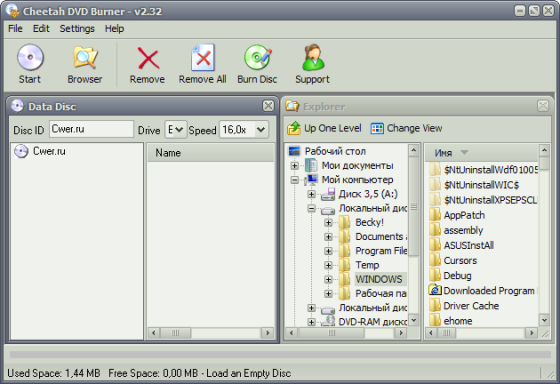 Cheetah DVD Burner - программа для быстрой записи CD/DVD дисков, Audio CD, создания файлов-образов. Работает с дисками Blu-Ray, двухслойными и обычными DVD, CD. Может записывать Audio CD из файлов MP3, WMA и WAV. Cheetah DVD Burner также может создавать файлы-образы ISO, записывать файлы Bin/Cue, создавать Видео DVD. Поддерживаются режимы записи DAO и TAO для любых дисков. Это легкая и быстрая программа для записи любых дисков, которая не требовательна к ресурсам.