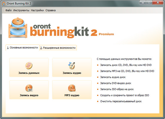 Oront Burning Kit программа для записи, очистки и копирования CD и DVD, предоставляющая широкие возможности для упрощения работы с дисками.