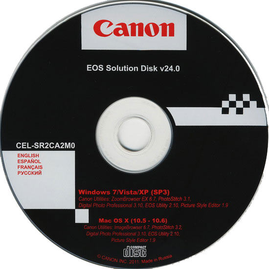 Canon EOS DIGITAL Solution Disk из комплектации камер Canon EOS 600D и EOS 1100D. Содержит программное обеспечение для просмотра, редактирования, систематизации и печати изображений, а также управления фотоаппаратом.