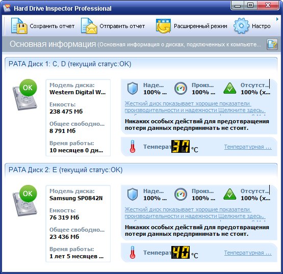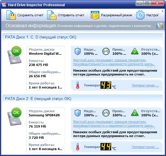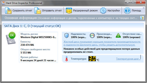 Hard Drive Inspector - мощная, удобная и эффективная программа, предназначенная для контроля за состоянием жестких дисков. Данная программа предназначена для контроля за состоянием ваших жестких дисков, благодаря чему вы сможете избежать выхода из строя дисков и потери важных данных. Интерфейс программы переведен на множество языков, включая русский язык, а также в дистрибутиве программы имеется справка на русском языке.