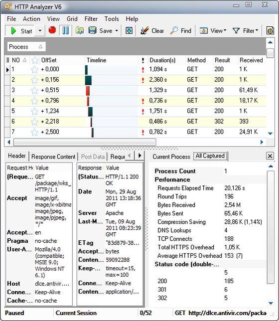 HTTP Analyzer – программа-сниффер, позволяющая вам производить мониторинг и захватывать HTTP/HTTPS трафик в реальном времени. Позволяет отслеживать и отображать широкий диапазон информации, включая заголовки, содержание, cookies, строки запросов, отправку данных, потоки запросов и ответов, перенаправление URL и многое другое. Программа дает возможность удобно просматривать потоковые запросы. Кроме этого, данная программа обеспечивает кэширование информации и очистку сессии, информацию о статусе HTTP кода и имеет несколько настроек по фильтрации. Программа доступна в двух версиях, в качестве отдельного полнофункционального приложения и в качестве дополнения для Internet Explorer. Кроме IE, программа поддерживает работу с браузерами Opera, Firefox и другими интернет-браузерами. Основные возможности программы сводятся к удобной отладке HTTP-запросов.