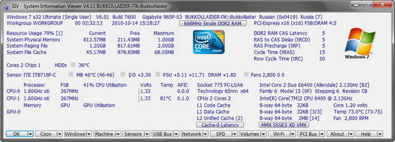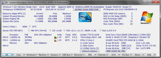 SIV (System Information Viewer) - это небольшая программа предоставляет информацию о широком наборе характеристик компьютера: об установленном оборудовании и программах, информацию с датчиков температуры, напряжение PSU, процессора, памяти, информацию об используемой памяти, жестких дисках, сети и многое другое.