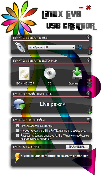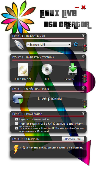 LiLi USB Creator является свободным программным обеспечением для Windows, позволяющим создать загрузочный Live флеш USB-ключ с Linux на нем. Это программное обеспечение также предлагает эксклюзивную возможность автоматической виртуализации для запуска Linux прямо в Windows без каких-либо конфигураций и установки.