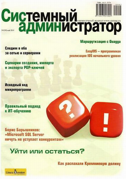 Специализированное независимое издание, посвященное решению проблем и практических задач, с которыми ежедневно сталкиваются в своей работе системные и сетевые администраторы, специалисты по информационной безопасности, руководители IT-отделов, охватывающее почти все аспекты их профессиональной деятельности.