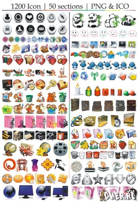 1200 иконок|50 разделов|каждая в PNG & ICO формате
