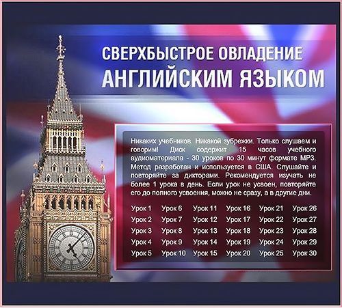 Курс «Сверхбыстрое овладение английским...» поможет вам выучить язык, не выходя из дома, прикладывая минимум усилий, за максимально короткий срок - речь идет о считанных месяцах. Даже если раньше вам это совершенно не удавалось, и даже если вы уже не верили в свои способности это сделать. От вашей мечты вас отделяет лишь несколько месяцев!