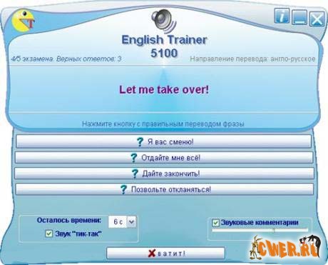 Тренажёр-экзаменатор понимания английского. Тренажёр предлагает задания профессиональной сложности на перевод фраз.