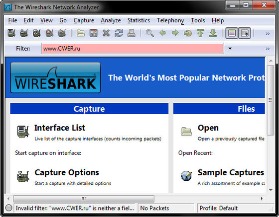 Wireshark - программа предназначена для сбора и анализа информации о входящем/исходящем сетевом трафике. Wireshark поддерживает DNS, FDDI, FTP, HTTP, ICQ, IPV6, IPX, IRC, MAPI, MOUNT, NETBIOS, NFS, NNTP, POP, PPP, TCP, TELNET, X25 и т.д. Функциональность, которую предоставляет Wireshark, очень схожа с возможностями программы tcpdump, однако Wireshark имеет преимущество в виде графического пользовательского интерфейса и гораздо больше возможностей по сортировке и фильтрации информации.