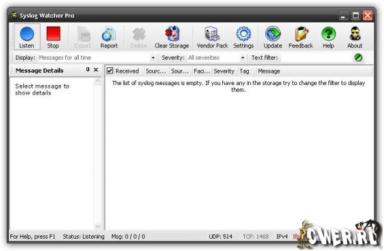 Syslog Watcher Pro - сервер Syslog для Microsoft Windows, стандарт отправки сообщений о происходящих в системе событиях (логов), использующийся в компьютерных сетях, работающих по протоколу IP. Отправитель посылает короткое текстовое сообщение, размером меньше 1024 байт получателю сообщения. Получатель при этом носит имя «syslogd», «syslog daemon», либо же, «syslog server». Сообщения могут отправляться как по UDP, так и по TCP. Как правило, такое сообщение отсылается в открытом виде. Тем не менее, используя специальные средства (такие, как Stunnel, sslio или sslwrap), возможно шифрование сообщений и отправка их по SSL/TLS.