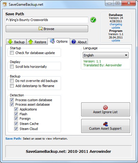 SaveGameBackup - полезная и удобная программа для резервного копирования и восстановления сохранений игр всего за пару кликов. Это будет особенно полезно при переустановке или обновлении ОС. Автоматически находит все игры, которые установлены на компьютере и сохраняет все файлы с вашими "сейвами" в указанную папку. Поддерживает около 1000 игр, в том числе Call Of Duty, Battlefield, Civilization, S.T.A.L.K.E.R. и т.д. Если игра не поддерживается, вы можете самостоятельно добавить ее в список.
