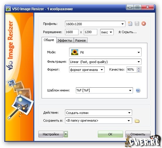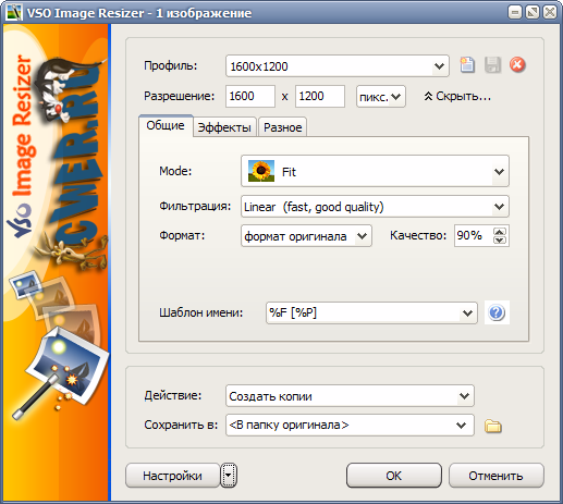 VSO Image Resizer - программа для изменения размеров цифровых картинок и изображений в различных графических форматах (на данный момент поддерживается работа с файлами JPEG, GIF, BMP, TIFF, CR2, NEF и т.д.). Также в утилите имеются возможности для компрессии файлов, конвертирования из одного формата в другой, экспорта, наложения прозрачных прозрачных и управления картинками. VSO Image Resizer интегрируется в оболочку Windows, может работать в пакетном режиме, обладает расширенными опциями настройки для продвинутых пользователей.