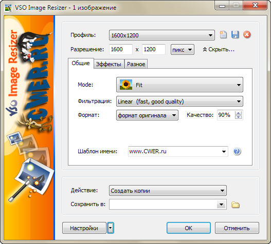 VSO Image Resizer - программа для изменения размеров цифровых картинок и изображений в различных графических форматах (на данный момент поддерживается работа с файлами JPEG, GIF, BMP, TIFF, CR2, NEF и т.д.). Также в утилите имеются возможности для компрессии файлов, конвертирования из одного формата в другой, экспорта, наложения прозрачных прозрачных и управления картинками. VSO Image Resizer интегрируется в оболочку Windows, может работать в пакетном режиме, обладает расширенными опциями настройки для продвинутых пользователей.
