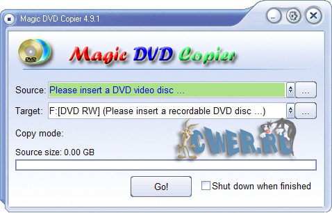 Magic DVD Copier - позволяет копировать один к одному любые DVD диски. Программа успешно обходит региональную защиту DVD, а также все известные способы защиты от копирования: CSS, Region, RCE, Macrovision, Sony ARccOS. Программа обладает высокой скоростью работы, поддерживает большинство DVD приводов.