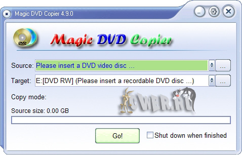 Magic DVD Copier - позволяет копировать один к одному любые DVD диски. Программа успешно обходит региональную защиту DVD, а также все известные способы защиты от копирования: CSS, Region, RCE, Macrovision, Sony ARccOS. Программа обладает высокой скоростью работы, поддерживает большинство DVD приводов.