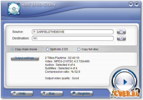 Arc DVD Copy - простой и быстрый инструмент для копирования видео DVD в том числе и защищенных. Подойдет как начинающим пользователям, так и продвинутым. Скопирует DVD-фильм за 20-40 минут! Поддерживает двухслойные диски, возможность редактирования меню, шифрования Ваших проектов и многое, многое другое!