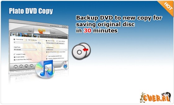 Хотите сохранить Ваш любимый фиьм на DVD или сделать копию поцарапанного диска? С помощью Plato DVD Copy Вы можете скопировать DVD-фильм на DVD-R(W) and DVD+R(W) за 30 минут.