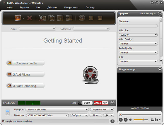 ImTOO Video Converter Ultimate - программа позволяет конвертировать видео. Поддерживает работу практически со всеми популярными видео форматами, такие как: AVI, WMV, MPEG-1/2/4, MOV, 3GP, ASF, MP4, MP2, MP3, WMA, WAV, M4A, AAC, AC3 и OGG, с возможностью кодирования и декодирования High-Definition видео.