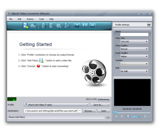Xilisoft Video Converter Platinum - это мощный, универсальный видео конвертер. Он поддерживает большинство популярных видео форматов, в том числе DVD, VCD, SVCD, MOV, RM, AVI, MPEG, MPEG1, MPEG2, MPEG4, WMV, 3GP, h264 и т.д. Так же в нем присутствует возможность конвертирования в iPod и PSP видео.