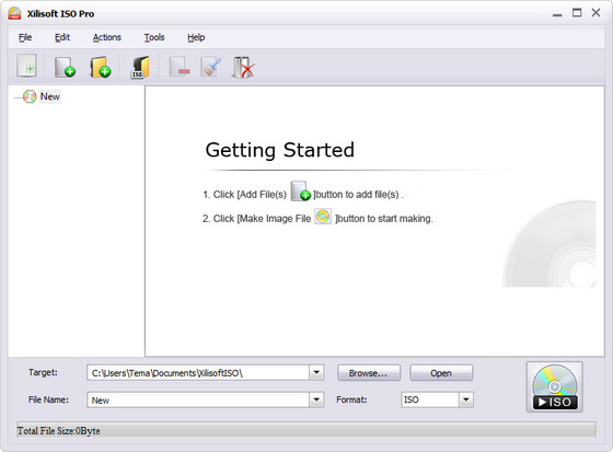 Xilisoft ISO Pro - отличное программное обеспечение для создания ISO образов. Позволяет создавать файлобразы любых типов файлов, в том числе документов, программ, и мультимедиа файлов, например AVI в ISO. Также программа дает возможность открывать и редактировать данные файлы и извлекать их на жесткий диск. Программа оптимизирует структуру памяти для создания образов, что помогает экономить дисковое пространство. Имеет простой интерфейс, что помогает с легкостью создавать ISO образы.