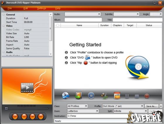 Программа для создания резервных копий DVD-дисков. Поддерживает риппинг во все самые популярные форматы, среди которых AVI, MPEG, WMV, DivX, 3GP, MOV, MP4, MP3, WAV, AAC, M4A. Программа позволяет выбрать язык субтитров, разбить файл на части указанного размера, задействовать звук Dolby Surround, выбрать битрейт аудио. Кроме этого, программа анализирует тип процессора и в зависимости от этого выбирает наилучшую скорость риппинга. Также программа полностью задействует возможности последних процессоров и позволяет выполнять пакетное преобразование файлов.