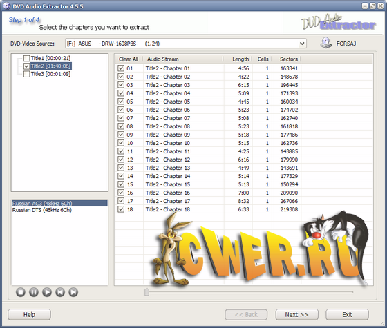 DVD Audio Extractor - небольшая программа, призванная помочь в «выдирании» саундтреков с дисков DVD и сохранения их в форматах OGG, MP3 или Wav. DVD Audio Extractor справляется с извлечением аудио из большинства форматов DVD-Video: Dobly Digital, MPEG-1 и MPEG-2, Liner PCM. Программа поддерживает пакетное выполнение заданий, благодаря этому Вы можете указать все аудиотреки, которые нужно извлечь и программа выполнит операции с ними одну за другой.
