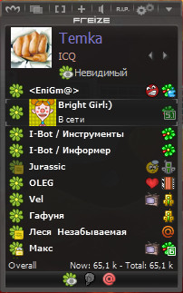 После его установки можно будет обмениваться сообщениями сразу во всех перечисленных сетях без установки самих программ ICQ, AIM и т.д. Доступны такие возможности, как зашифрованный чат (как двухсторонний, так и в режиме конференции), поддержка множественных ICQ/AIM одновременных сессий, мультисерверные соединения, звуковые эффекты, поддержка скинов (через XLM) c возможностью подстройки (вроде прозрачного фона).