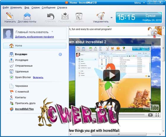 IncrediMail - очень оригинальная почтовая программа, причём главная её особенность - не набор функций по обработке корреспонденции (хоть и их немало), а совершенно новые, не имеющиеся ни в одной из других почтовых программ, возможности по оформлению писем с помощью анимации, создания "прыгающего" текста, включения в текст графических смайликов и т.д., включая самые разнообразные 3D-эффекты. Результатом всего этого станет то, что самое обычное письмо превратится в настоящее произведение искусства с вашей личной подписью - встроенный в программу редактор позволяет вытворять и не такое.