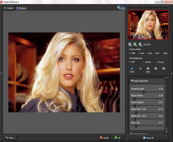 Topaz DeNoise является передовым плагином шумоподавления для Adobe Photoshop. Он использует новый и мощный метод фильтрации шумов. Это новые технологии, которые были созданы за последние несколько лет- максимально подробное изображение при одновременном снижении шума. Просто и эффективно снижает шумы на изображениях при этом не снижая качества деталей!