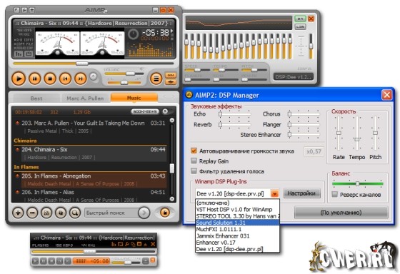 IMP - программа, которая разрабатывалась как аналог всем известного медиаплеера Winamp. На данный момент программа включает в себя множество дополнительных модулей: CD-Ripper, Tag Editor, Audio-player, аудио конвертер, запись аудио и дисков с данными и многое другое. AIMP заменяет множество программ, благодаря чему теперь не нужно искать специальный софт, скажем, для перегона Audio-CD в MP3 - это уже предусмотрено в AIMP. Программа позволяет воспроизводить без плагинов множество форматов, включая WAV, MP3, MP2, MP1, OGG, WMA, UMX и многие другие. Интерфейс программы выглядит очень стильно, а также имеет многоязычную поддержку, включая русский язык.