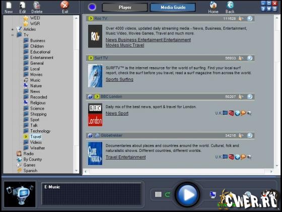Readon TV Movie Radio Player 5.0.0.0 представляет собой программу, с помощью которой Вы сможете просматривать тысячи различных каналов Интернет-телевидения и Интернет-радио. Понравившиеся музыкальные композиции можно сохранить в формате mp3. Программа имеет удобный интерфейс: все каналы разбиты по странам (есть несколько десятков на русском языке) и категориям. Readon TV Movie Radio Player 5.0.0.0 - это действительно лучший программный продукт в своей области.