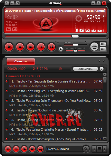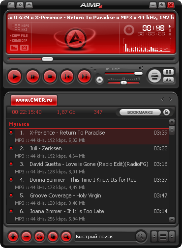 AIMP - это многофункциональный аудио центр. Благодаря встроенным утилитам, вы легко сможете перекодировать музыку из одного формата в другой, записать звук с микрофона или другого звукового устройства, отредактировать тэги музыкальных файлов, а так же группой переименовать или отсортировать их. AIMP2 базируется на известном аудио движке BASS - вы с легкостью можете подключить плагины от этой библиотеки к AIMP.AIMP - это отличный аудио плеер с поддержкой: скинов, многих музыкальных форматов и плюс, имеющий встроенные утилиты для работы со звуком. AIMP победил в «Софт года 2007» в номинациях «Интерфейс» и «Функциональность».
