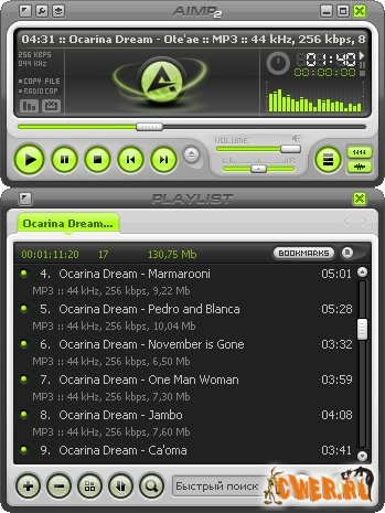 AIMP - это многофункциональный аудио центр. Благодаря встроенным утилитам, вы легко сможете перекодировать музыку из одного формата в другой, записать звук с микрофона или другого звукового устройства, отредактировать тэги музыкальных файлов, а так же группой переименовать или отсортировать их. AIMP2 базируется на известном аудио движке BASS - вы с легкостью можете подключить плагины от этой библиотеки к AIMP.AIMP - это отличный аудио плеер с поддержкой: скинов, многих музыкальных форматов и плюс, имеющий встроенные утилиты для работы со звуком. AIMP победил в «Софт года 2007» в номинациях «Интерфейс» и «Функциональность».